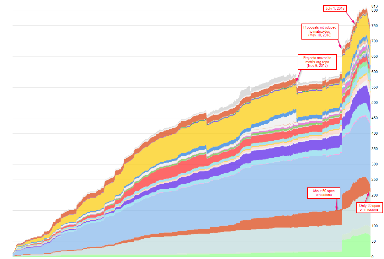 This is the result of a lot of work which spans the whole Spec Core Team, but has been particularly driven by TravisR, who has taken the lead on this whole mission to improve the spec. Huge thanks are due to Travis for his work here, and also massive thanks to everyone who has suffered endured reviewed his PRs and contributed to the releases. The spec is looking unrecognisably better for it - and Matrix 1.0 is feeling closer than ever!
